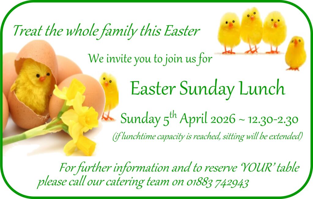 If you would like to reserve a table for lunch or require a different style of menu, do not hesitate to contact the Restaurant Tel: 01883 742943. Please click here to view and find out about our Sunday Lunch Carvery Service.